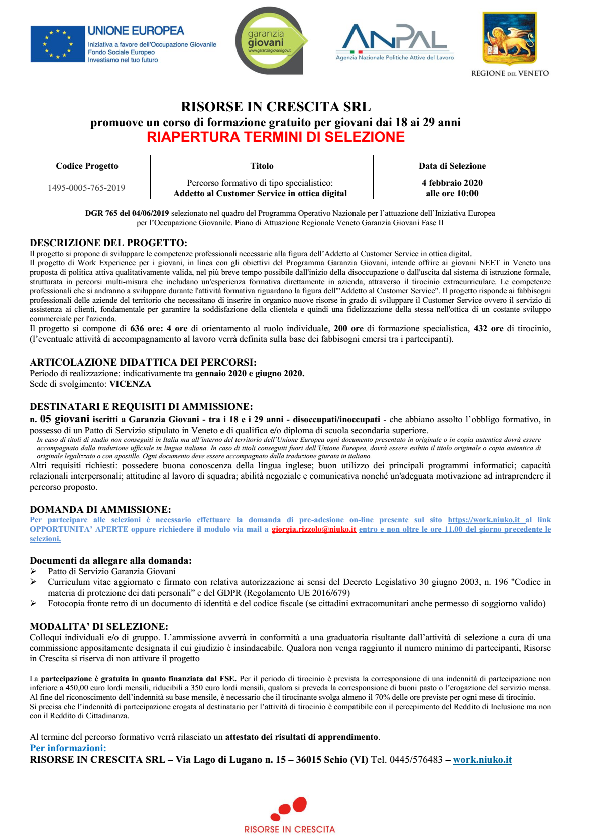 RISORSE IN CRESCITA SRL_Via Lago di Lugano n.15-35015 Schio (VI); Tel. 0445/576483- work.niunko.it