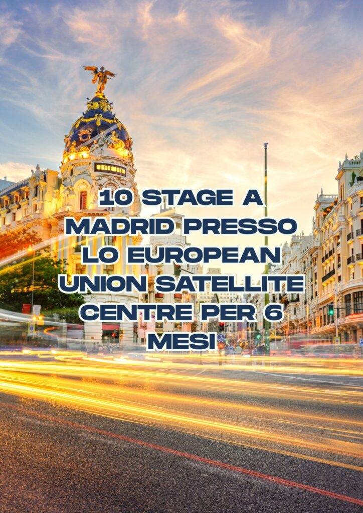 Sono aperte le candidature per tirocini 2026 presso il Centro Satellitare dell’Unione Europea (SatCen), situato a Torrejón de Ardoz, vicino a Madrid. I tirocini dureranno 6 mesi (rinnovabili per altri 6 mesi) e sono disponibili 10 posizioni in vari settori, con impegno a tempo pieno (40 ore a settimana).