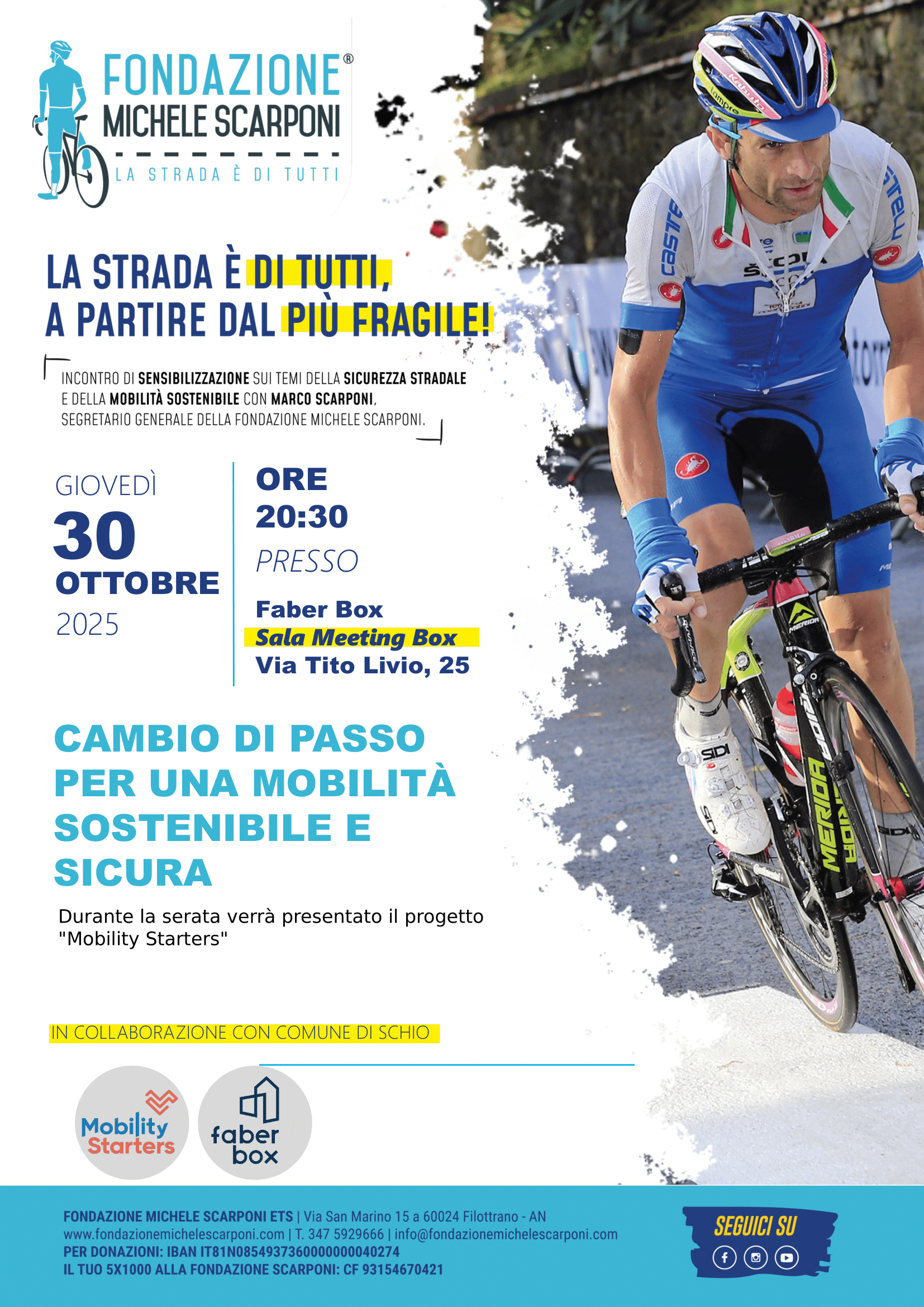 Incontro di sensibilizzazione sui temi della sicurezza stradale e della mobilità sostenibile con Marco Scarponi, segretario generale della fondazione Michele Scarponi.