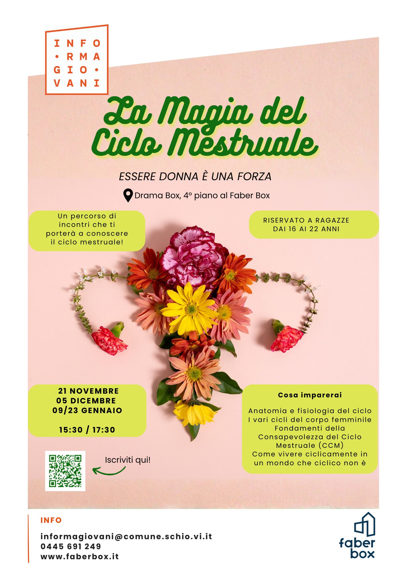 Percorso dedicato a giovani donne per scoprire ed essere consapevoli della propria vita ciclica, nonchè riconoscere e gestire la sindrome pre mestruale.