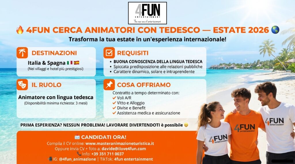 Cerchiamo persone con ottime doti comunicative, predisposizione al contatto con il pubblico e massima disponibilità nei fine settimana e festività.