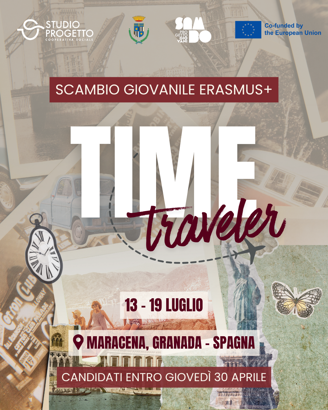 Comune di San Bonifacio e Progetto Giovani San Bonifacio selezionano 10 ragazzi e ragazze tra i 15 anni (compiuti) e i 17 anni e 1 youth leader maggiorenne per lo Scambio Giovanile Erasmus+ “Time Traveler” a Maracena, Granada, Spagna.